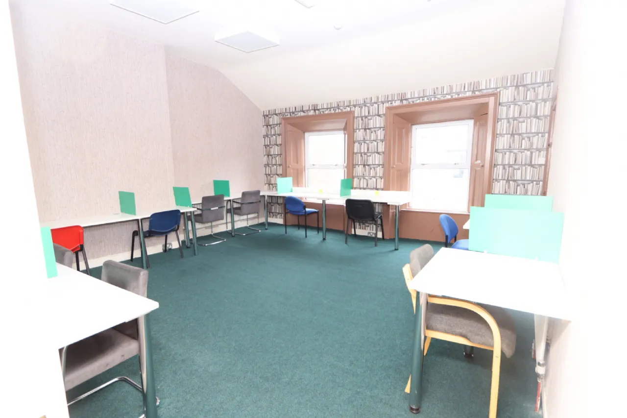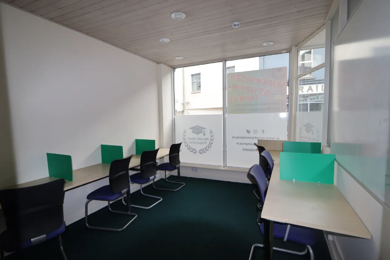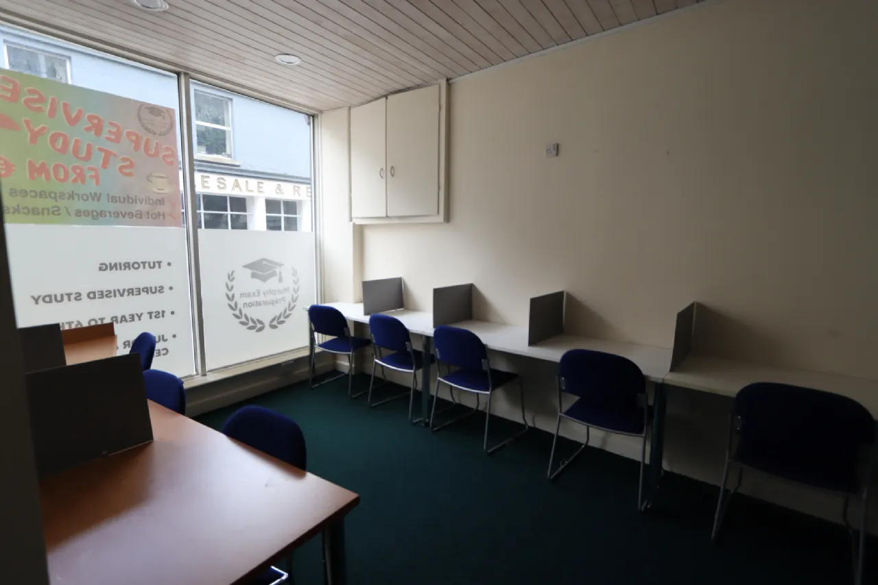 Recently used as an evening study centre for second level students and could accommodate up to 80 students at individual study desks. In five sub divided rooms.