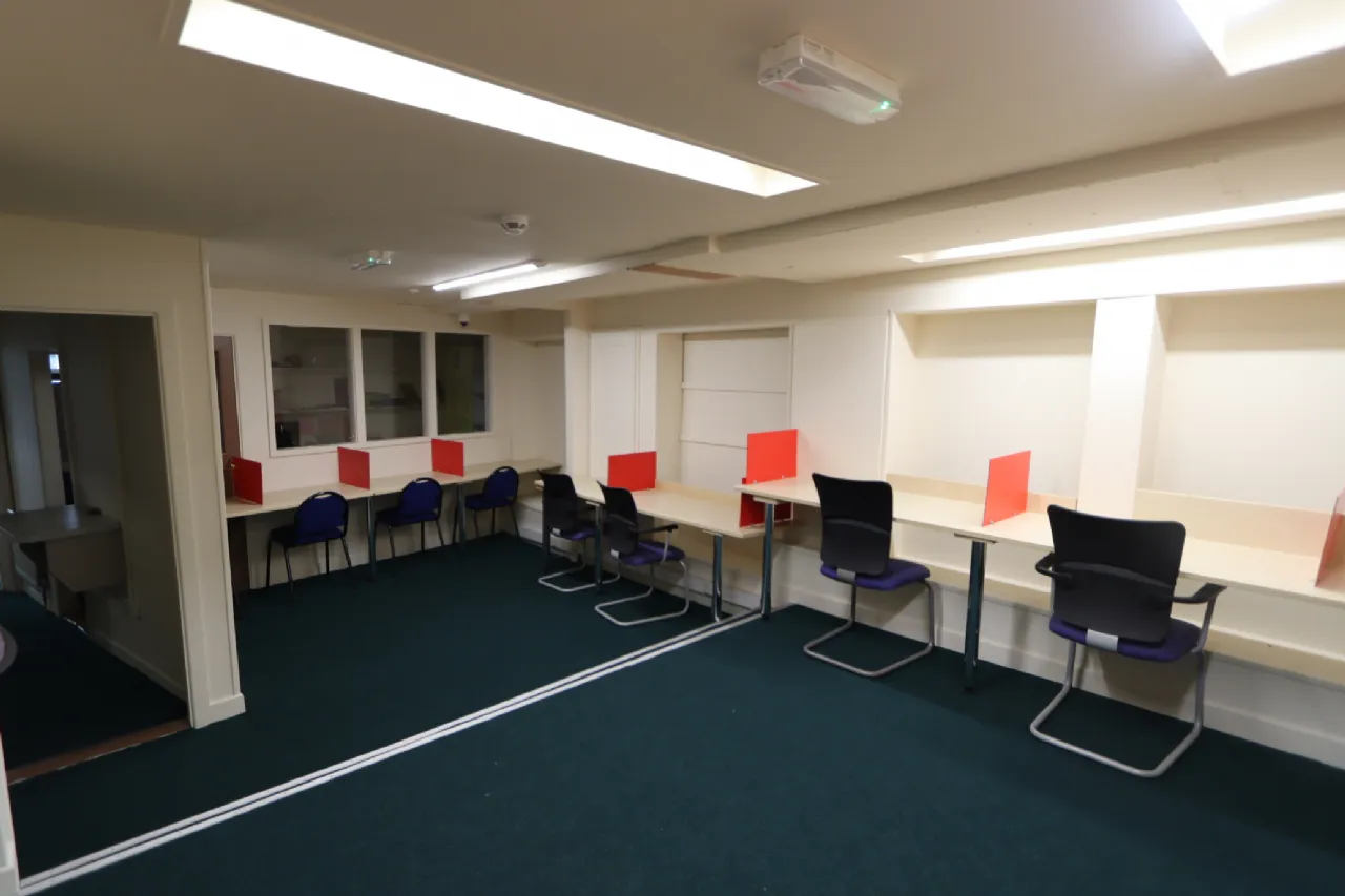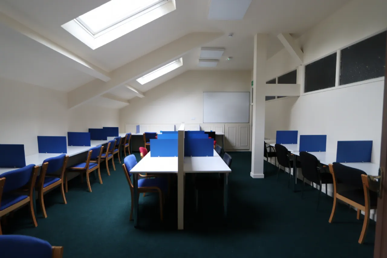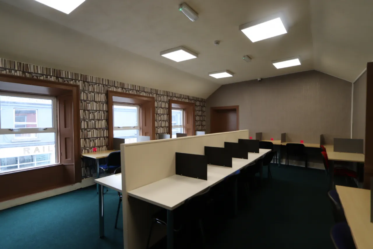 Recently used as an evening study centre for second level students and could accommodate up to 80 students at individual study desks. In five sub divided rooms.