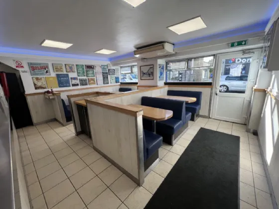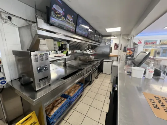 A 20 seat operational restaurant complete with takeaway licence and a good sized customer area / service counter. Prep and storage area are located to the rear and are fully fitted and operational to include stainless steel prep unit, ss ban marie hot well, round up bun toaster, Henny Penny Grill, Henny Penny Chicken Fryer with extraction unit, deep fryers, microwave, undercounter fridge, 3 chest freezers, 3 standing fridges, menu screens and cash registers.