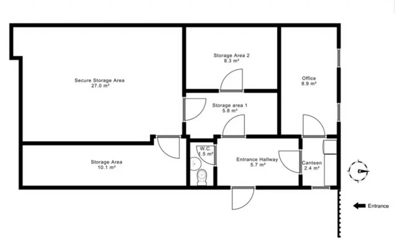 Storage Area 4.27m x 2.29m Divided into two Offices
